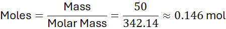 Problem: How many moles are in 50 g of aluminium sulphate, Al₂(SO₄)₃?