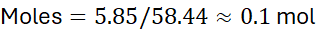 Molar mass = 22.99 + 35.45 = 58.44 g/mol
