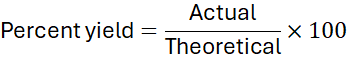 • Percent yield and theoretical vs actual yield